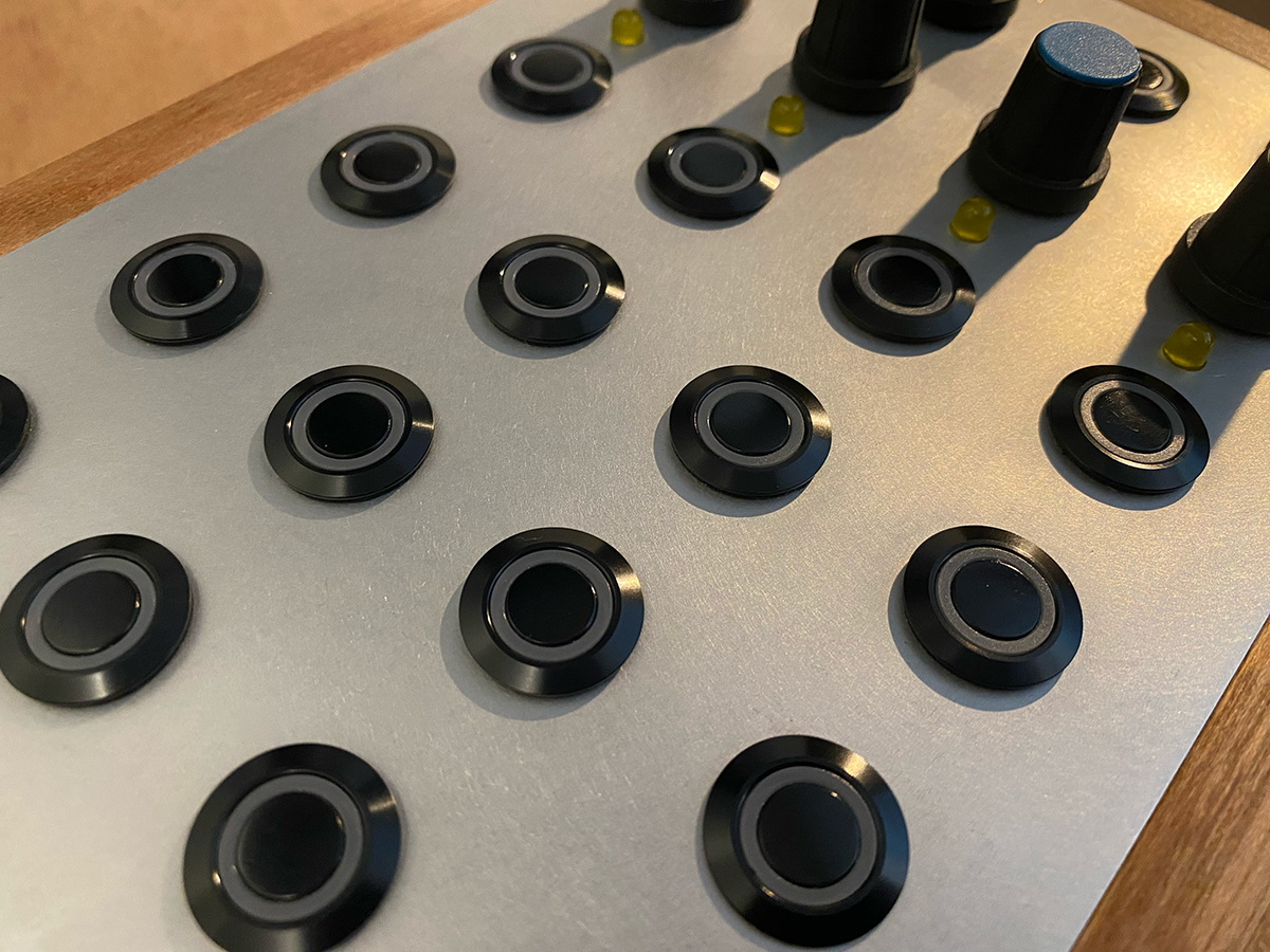 The Conundrum 16 is a hands-on 16-step MIDI sequencer and controller built for electronic music performance. Whether you're chopping samples in Traktor, sequencing a modular rig, or driving any MIDI gear, Lyrae gives you four independent slots, per-step velocity and note control, swing, and a note repeater — all from a compact, gig-ready layout with 16 backlit step buttons and four assignable control encoders.
